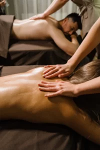 Особое внимание рекомендуем уделить процедуре массажа для двоих. Эта услуга популярна не только среди влюбленных и семейных пар: к нам приходят с подругами/друзьями или с детьми. Благоприятная атмосфера предполагает более открытое и непринужденное общение, что положительно сказывается на взаимоотношениях. Массаж для двоих – прекрасный подарок для любой пары.